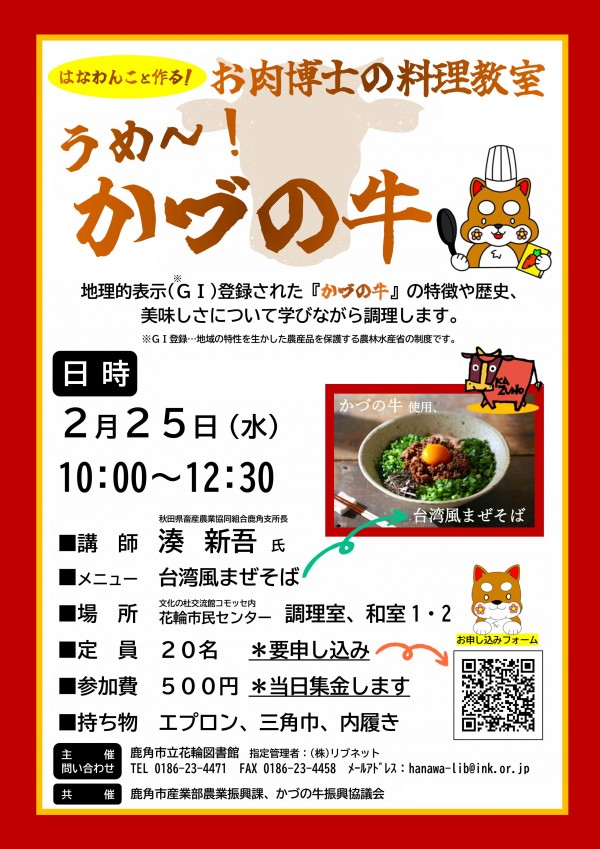 はなわんこと作る!お肉博士の料理教室「うめ~!かづの牛」