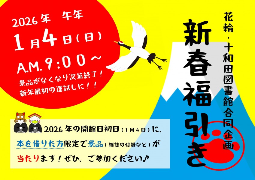 本を借りた方限定で景品(雑誌の付録など)が当たります!